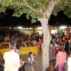 Uno spettacolo serale all'aperto con luci colorate e bandierine.