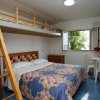 Struttura in muratura su due piani con soggiorno/cucina e camera da letto con letto matrimoniale e letto a castello, immersa nel verde.