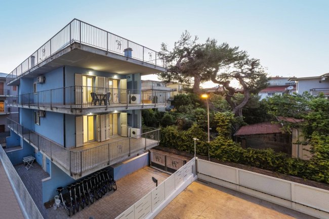 dotati di soggiorno con cucina e divano letto, camera da letto matrimoniale, bagno, e una terrazza (o un cortile) soggiornabile e a uso esclusivo. La struttura si trova in adiacenza a Poseidon e Nettuno, in seconda fila mare: alcuni appartamenti sono dotati di vista mare.