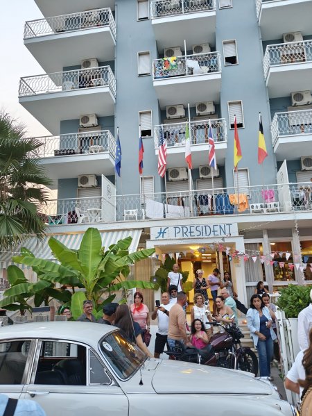 L' Hotel President si trova nella zona più turistica di San Benedetto del Tronto, nota meta balneare della Riviera delle Palme. La struttura, gestita direttamente dalla famiglia Valentini, si trova a pochi passi, circa 150 mt lo stabilimento balneare di proprietà Malibù con spiaggia di sabbia fine e dorata con fondale basso che digrada dolcemente. L'Hotel dispone di camere doppie, triple e quadruple e anche camere comunicanti dotate di ogni tipo di comfort: tv, telefono, frigo, cassaforte, phon, aria condizionata e wi-fi.  Al President è possibile inoltre assaporare i prodotti tipici della cucina regionale all'interno del suo ristorante. E’ presente inoltre un bar, 2 parcheggi privati, uno adiacente alla struttura mentre l'altro a 300 metri è videosorvegliato e coperto, una sala tv/lettura e l'area bimbi organizzata all'esterno. Per chi ama partire alla scoperta del territorio, a disposizione, ad uso gratuito, biciclette per percorrere la nuovissima pista ciclabile che si estende per tutta la Riviera delle Palme ed inoltre si organizzano escursioni a pagamento nell'entroterra con la possibilità di visitare e assaggiare i prodotti tipici locali, come le olive all'ascolana, olio e degustazioni di vini. In pochi minuti si arriva, inoltre, alla Riserva Naturale del Parco della Sentina. L' Hotel è ideale per le famiglie grazie ai suoi grandi spazi e alla vicinanza del centro cittadino.