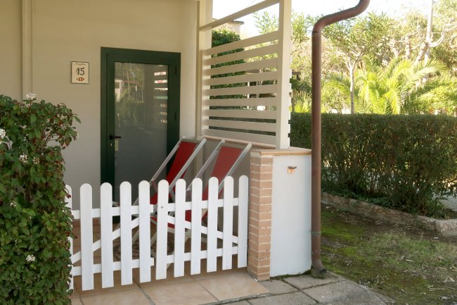 camera con letto matrimoniale, camera con letto a castello o due letti singoli, aria condizionata, tv, bagno con doccia, cucina e veranda esterna.
