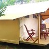 Tende-glamping attrezzate selezionando materiali eco sostenibili e privilegiando quelli provenienti dalla filiera del riciclo.Una struttura con pavimento in legno, ambienti ventilati naturalmente, angolo cottura con dotazione semplice, due fuochi ad induzione, frigo con congelatore, tavolo con sedie e veranda con divanetto. Zona notte composta da due camere con un letto matrimoniale e una con letto doppio (in quella 5 posti terzo letto a ponte).